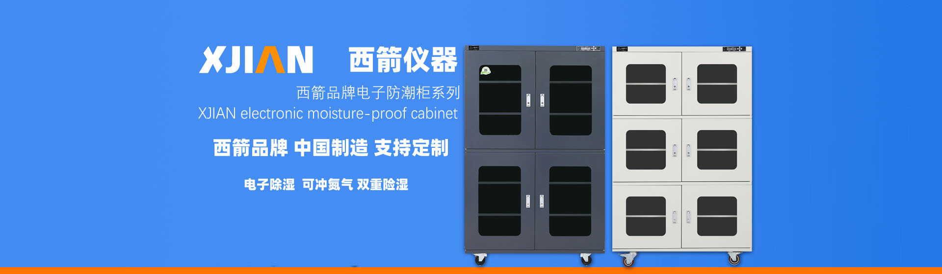 【西箭品牌】 XJIAN 總部位于中國上海,是上海市奉賢園區企業,經營自主品牌智能防潮柜、氮氣柜,防潮柜生產廠部位于中國.江蘇。西箭十年注專注于電子元器件行業芯片儲存領域,西箭品牌防潮箱廣泛應用于國家高校實驗室、芯片領域生產研究型企業!西箭電子防潮箱讓芯片儲存、電子元器件儲存成本變得省錢、省力、更省心!